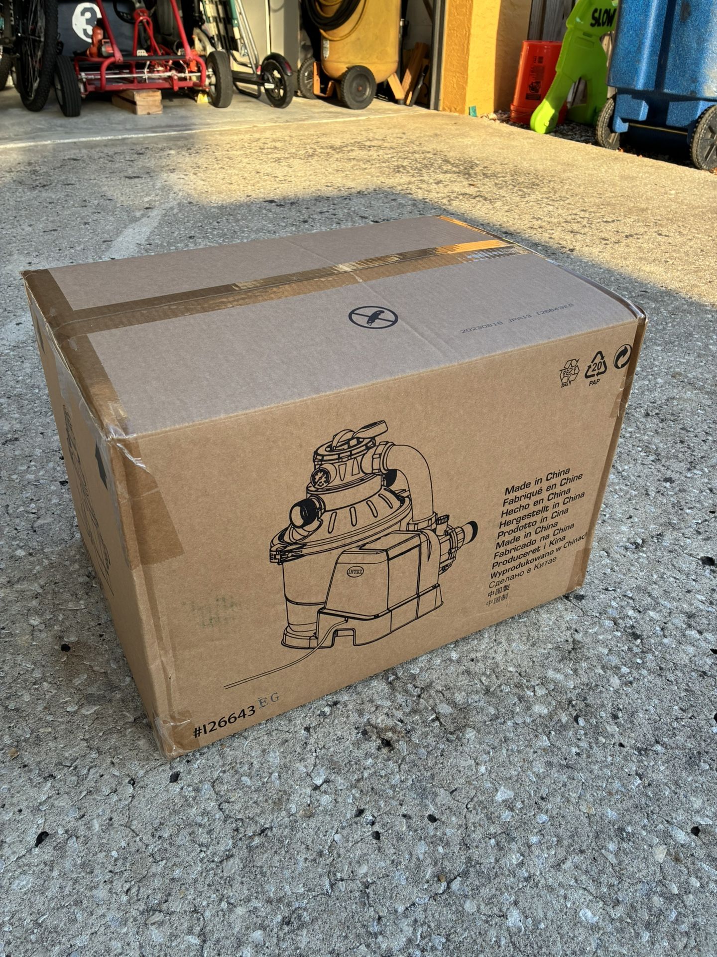 Intex pump/sand filter #26643EG. Purchased as part of a pool kit, and never even opened the box. Been kept inside storage entire time. Currently about $200 online. Please check fitment before purchasing.