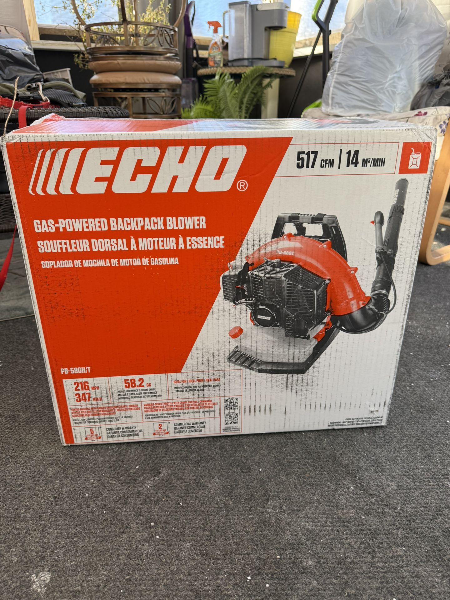 Brand new never used Echo Backpack blower 216 MPH 517 CFM 58.2cc Gas 2-Stroke Backpack Leaf Blower with Tube Throttle