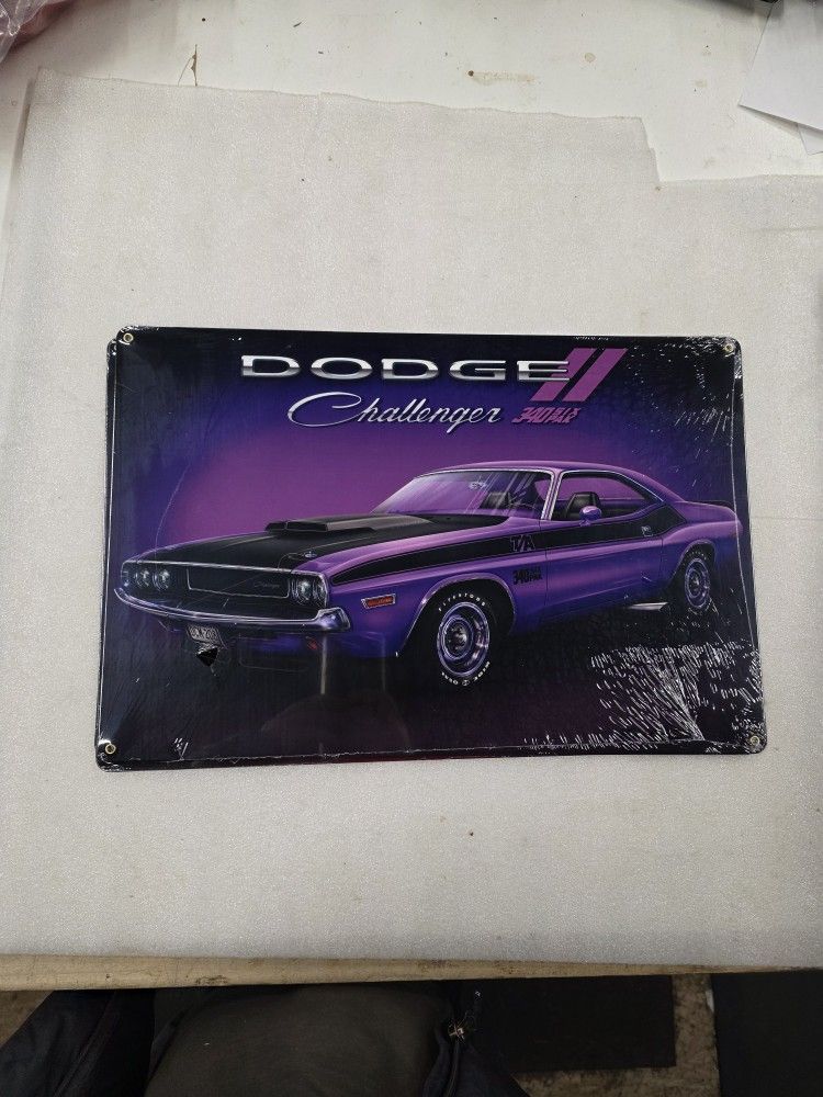 Dodge Mopar challenger Muscle Car faux vintage steel metal sign this is 18 X 12 inches great for sport bar, den or bedroom kitchen, man cave,, kids room, office, school, mancave, , garage, or hang in house or home, anywhere decor is needed. Great for birthday or Christmas gift.