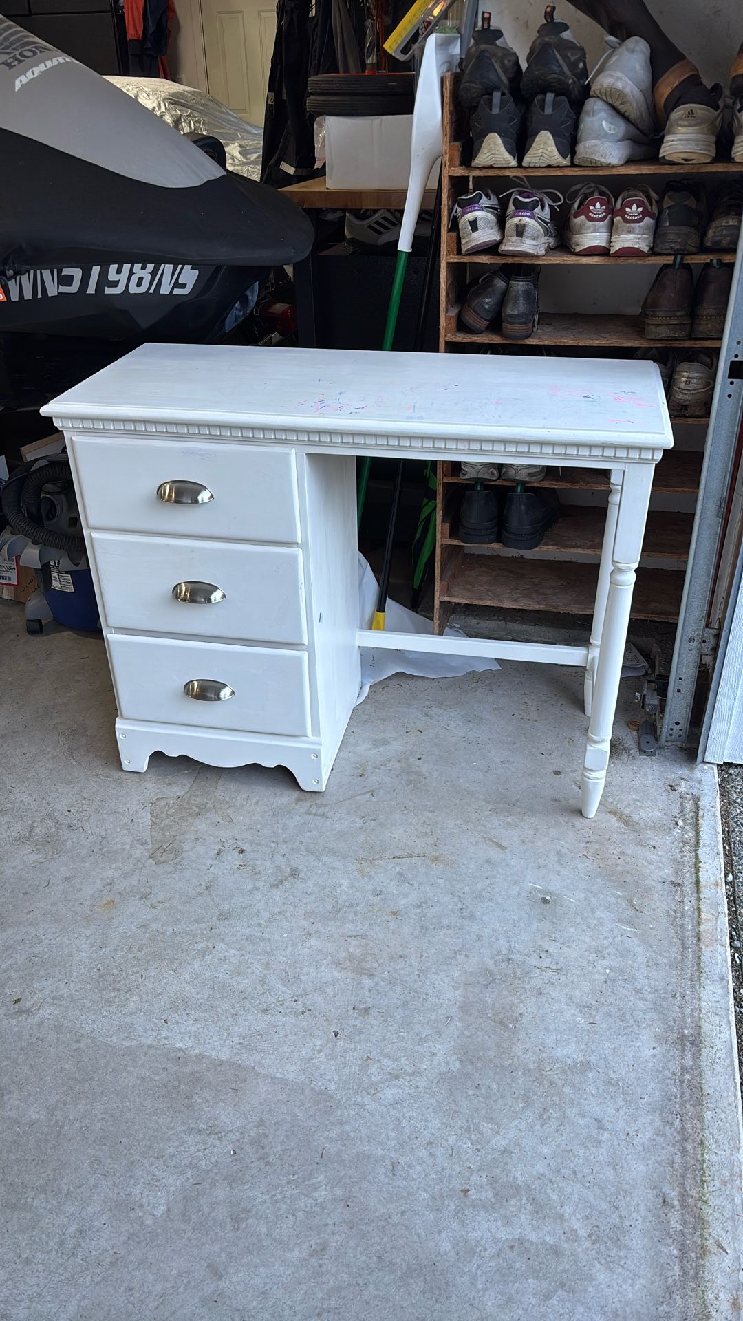 Child’s desk, three drawer, solid wood 32” x 41” length x 17” deep