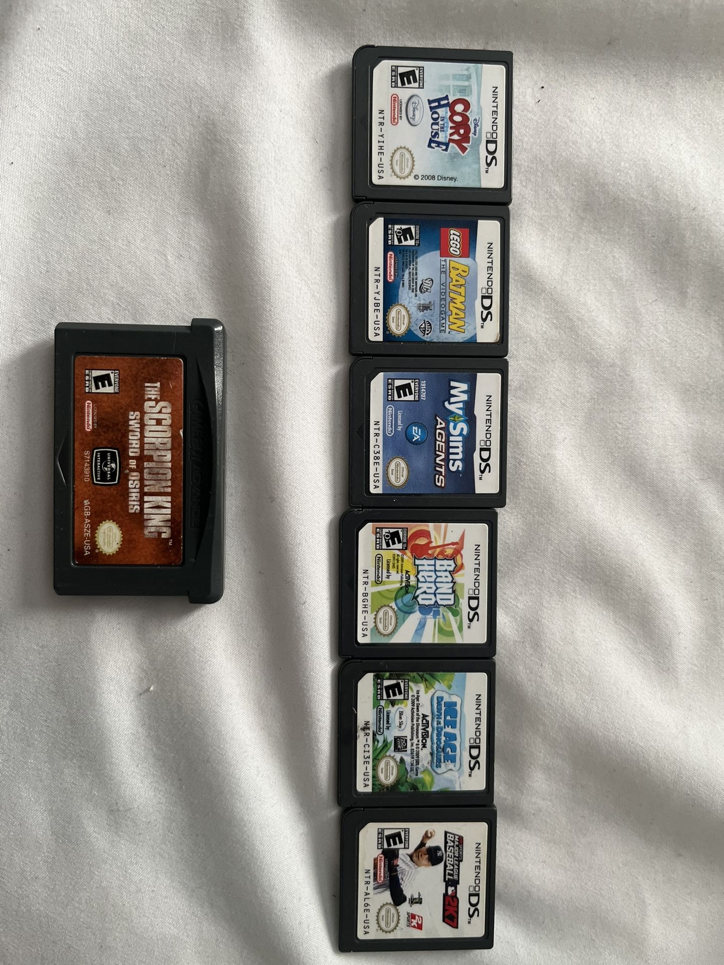 All games work no need for them now Band hero with accessories Lego Batman Call of duty black ops Golden eye Need for street pro street Toy Story 3 Little league Guilty gear Ice age My sims Cory in the house Major League Baseball 2k7 Kingdom hearts carrying case