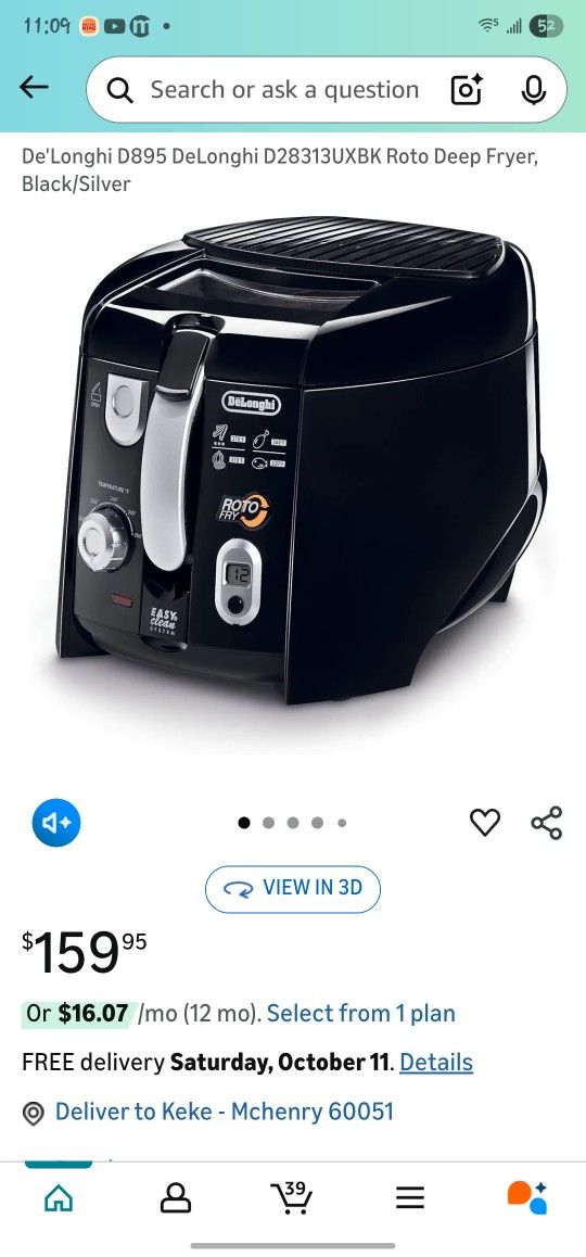 De'Longhi RotoFry Deep Fryer, which features a patented tilted rotating basket designed to use less oil while still achieving crispy results.