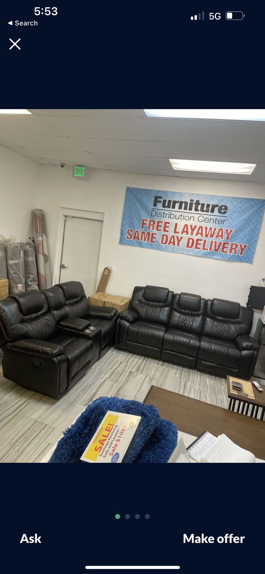 BEAUTIFUL BLACK SANTIAGO SOFA AND LOVESEAT SET!$1299!*SAME DAY DELIVERY*NO CREDIT NEEDED*EASY FINANCING*HUGE SALE*