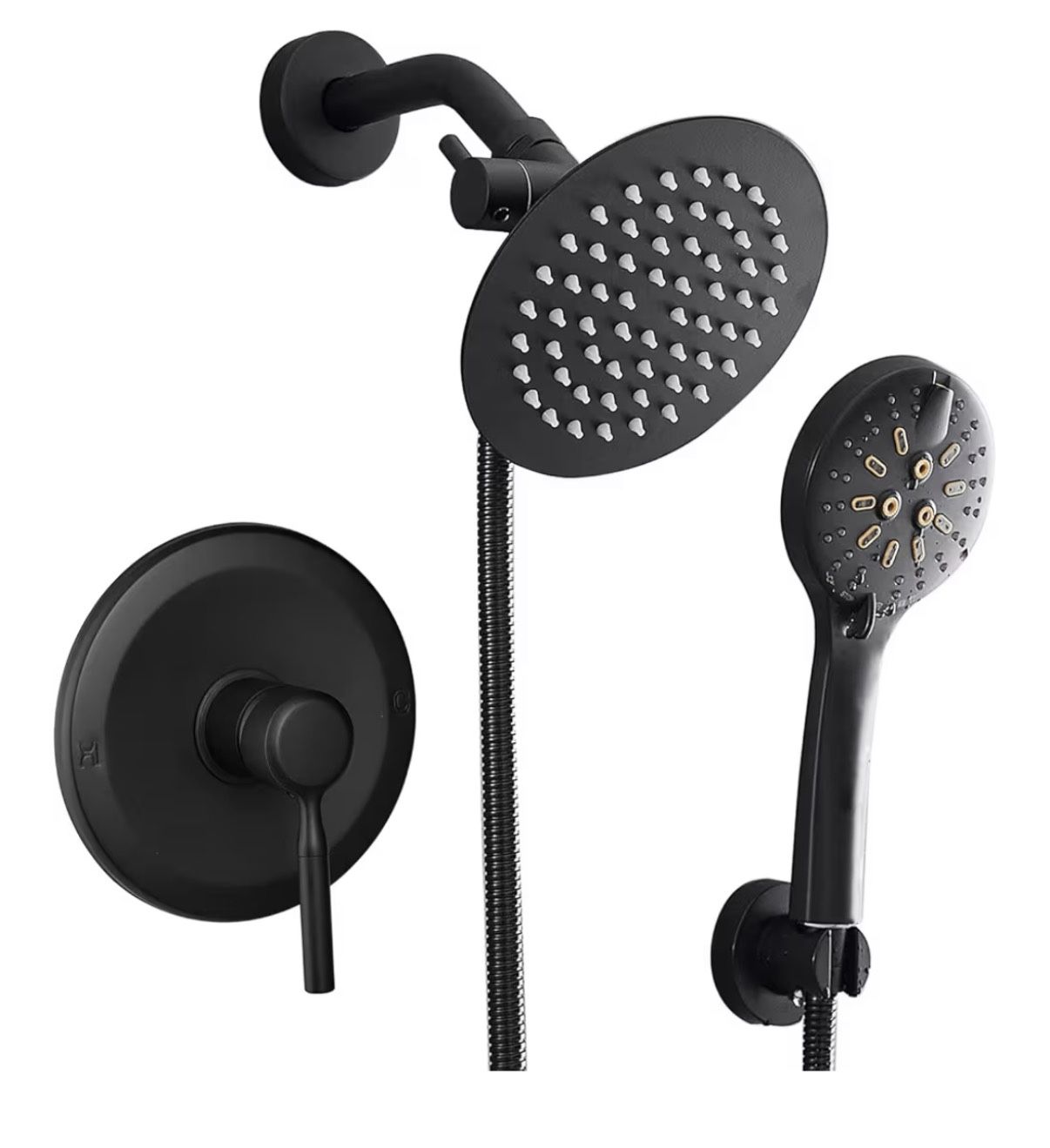 Black Shower Faucet With Handheld Shower Head & Valve Shower System combo With 6 Inch High Pressure Rainfall trim kit Set Complete