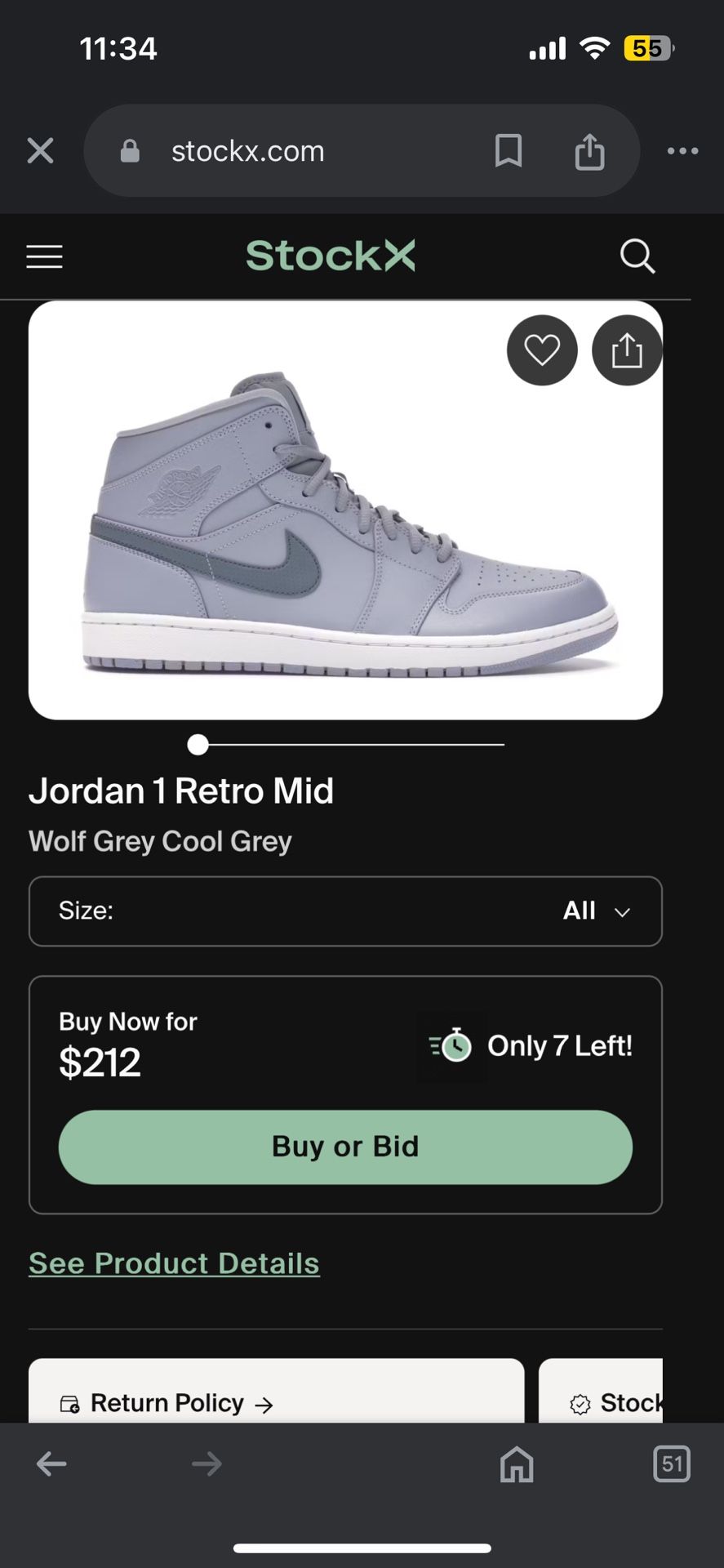 Jordan 1 Retro Mid Wolf Grey Cool Grey