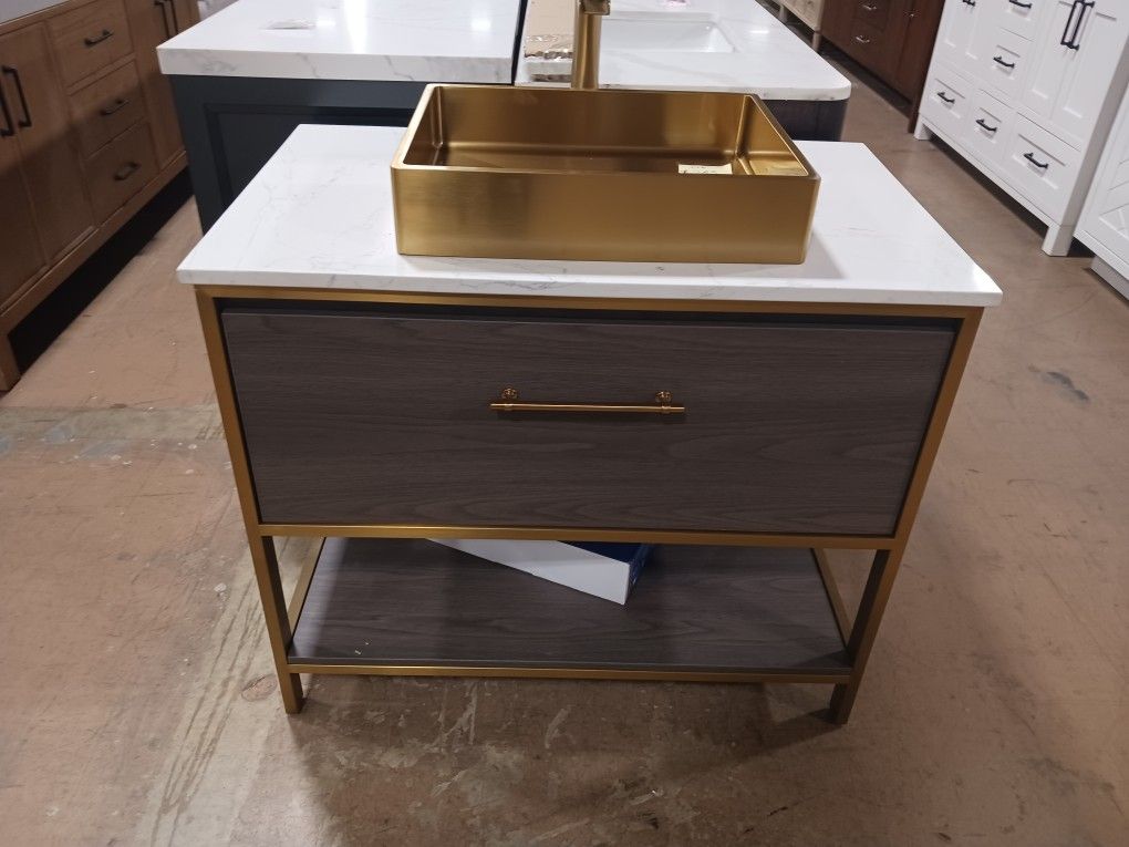 36" Bathroom Vanity with Gold Vessel Sink & Faucet For $1250