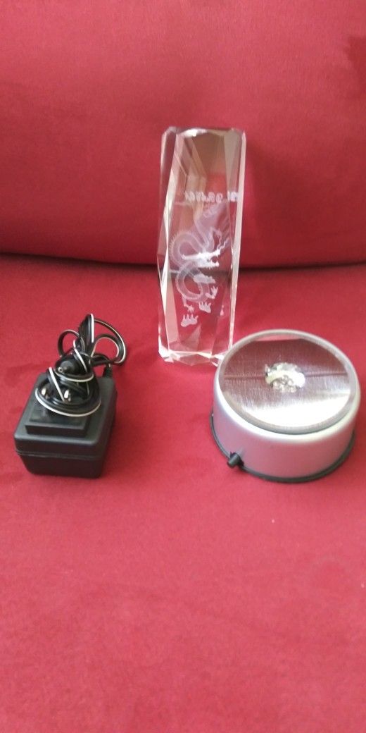 Sports & outdoors LOOK !!! Crystal dragon & 4 LED 3" Light Stand Night Light Rotating Base .heavy 3 lbs all together. Like new i never use it...electric or battery operated...BEAUTIFUL hard to find Please check my other items collectibles and .925 jewelry and coins