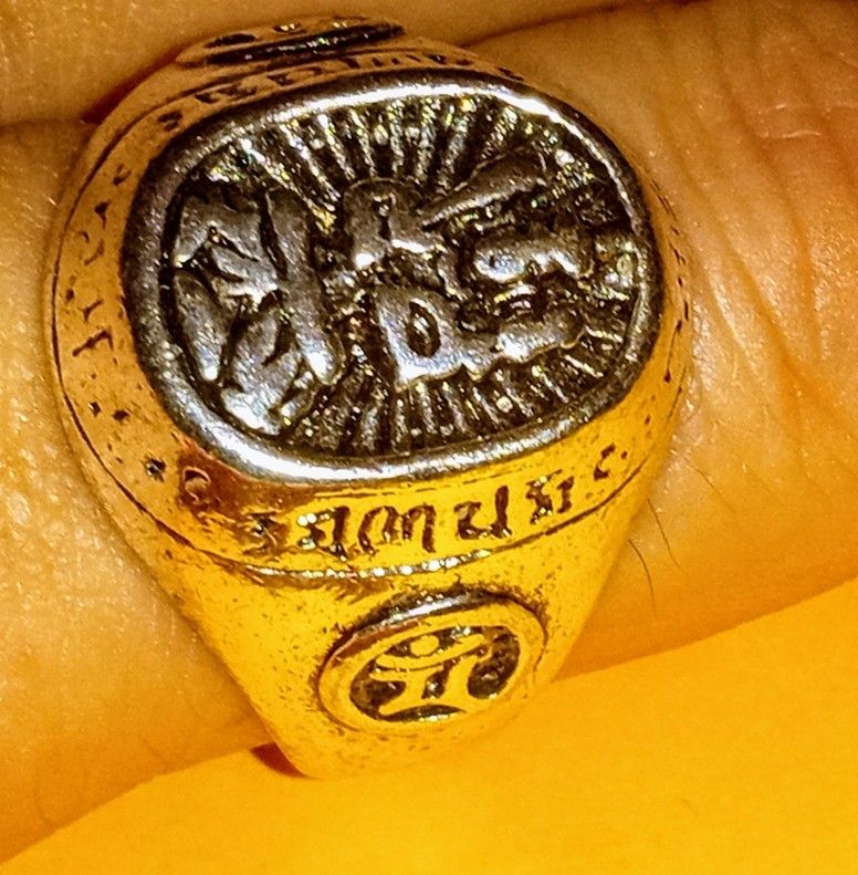 This Asian style ring makes a statement. Heavy weight ring is new and unworn. Chromium. size 13 1/4