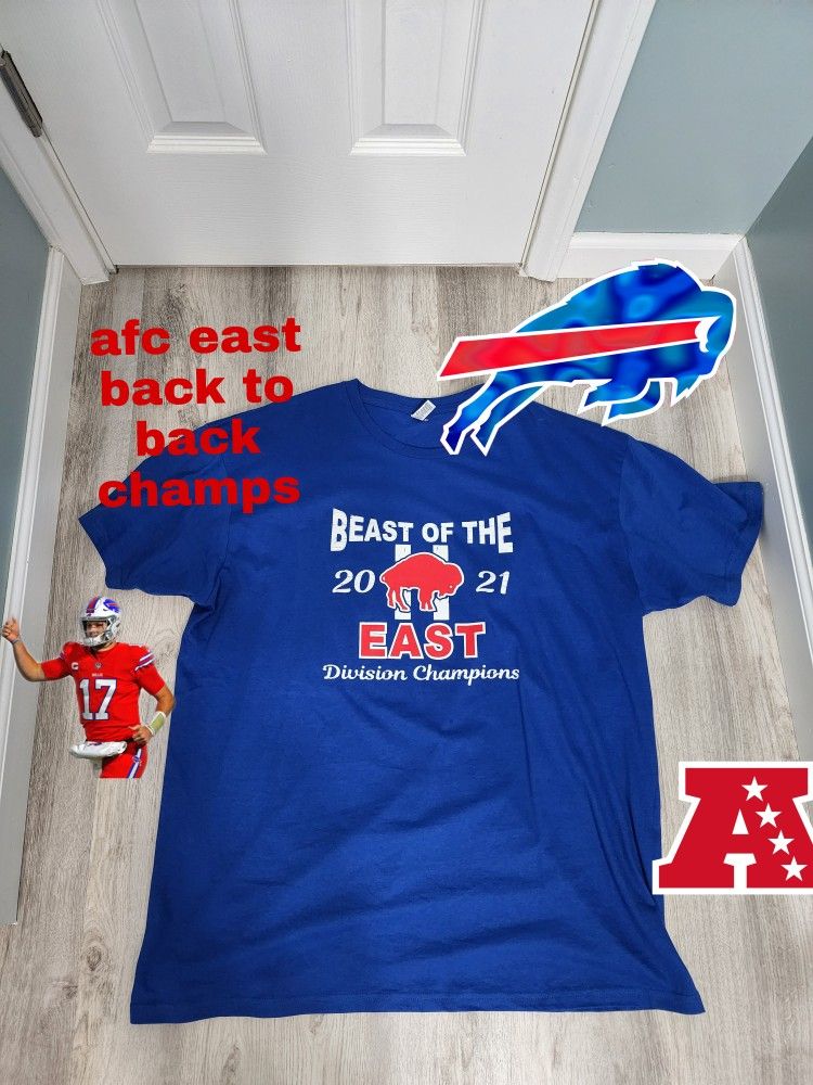 New without tags. Generic tee with quality print. Back to back afc east champs. Go Bills.Inspect all the pictures provided. Please ask questions no returns or refunds I ship same or next day guaranteed. Thanks and check out my other items. **Buy with confidence 100% seller rating **Unlike other sellers I do my best to answer any questions or offers right away* **Don't send offer or buy item if you won't pay** **Measurements upon request**