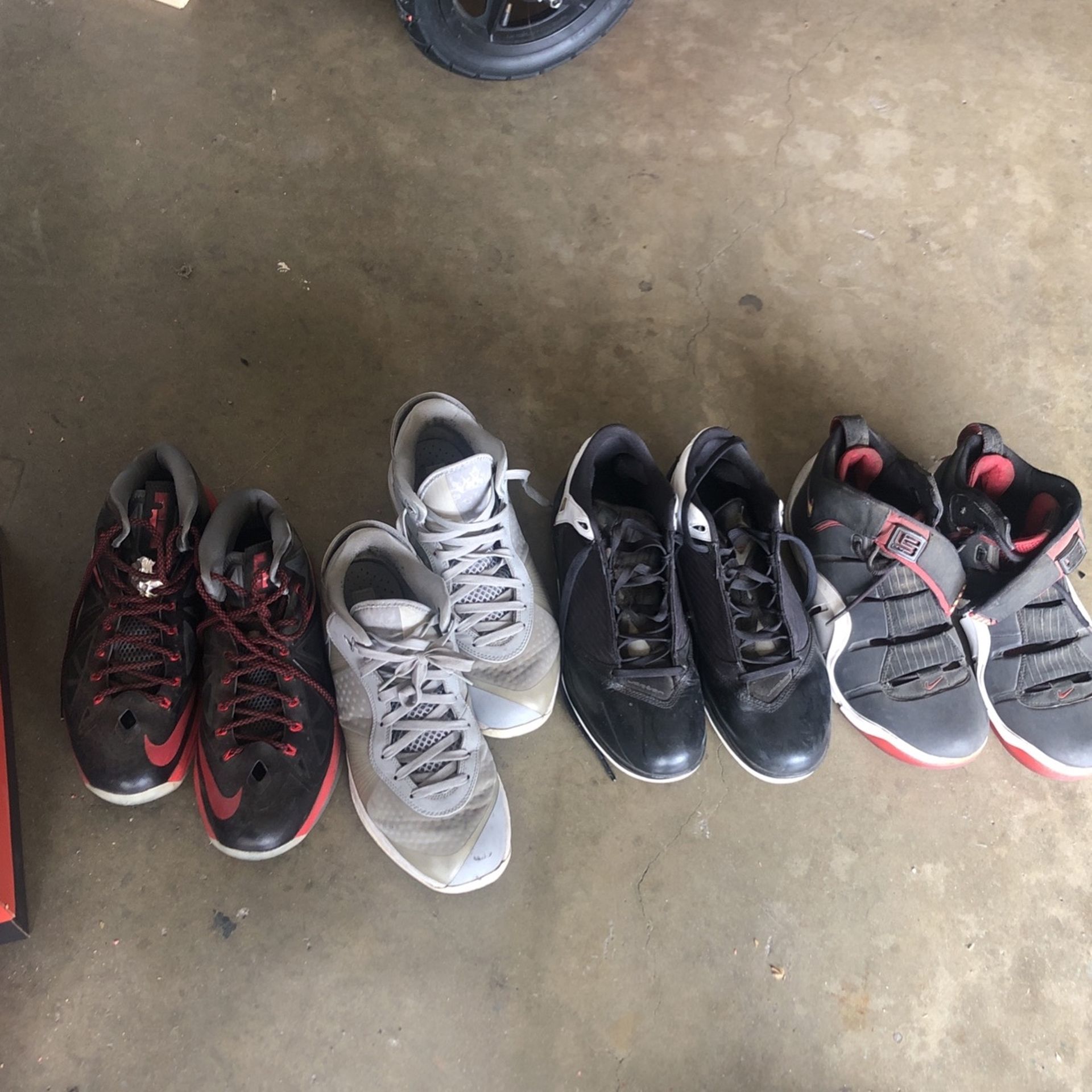 Take all for $100 sizes Lebron black size 12. And the black and red Lebron size 10.5. The other gray and black are size 11