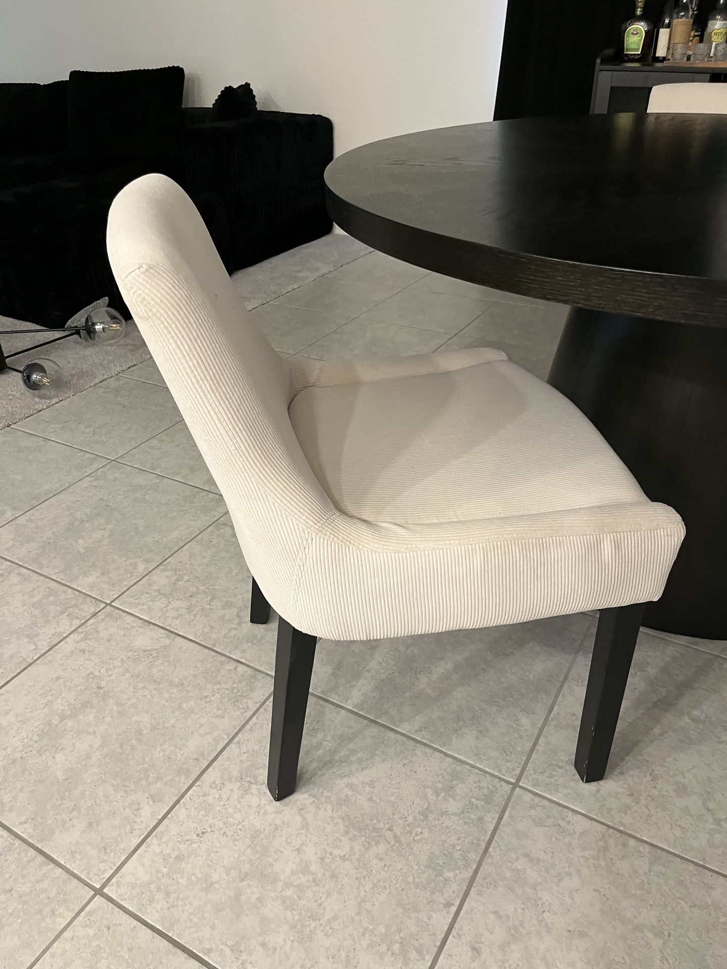 Modern dining chair cream corduroy fabric 4 chairs 1 leg broken can be fixed