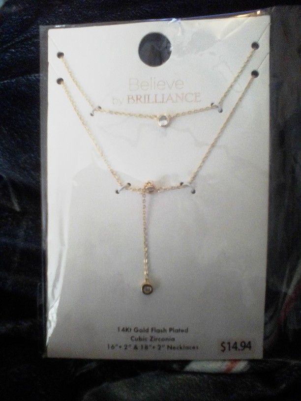 Believe By Brilliance 14k Gold Plated nexklace Set Of 2