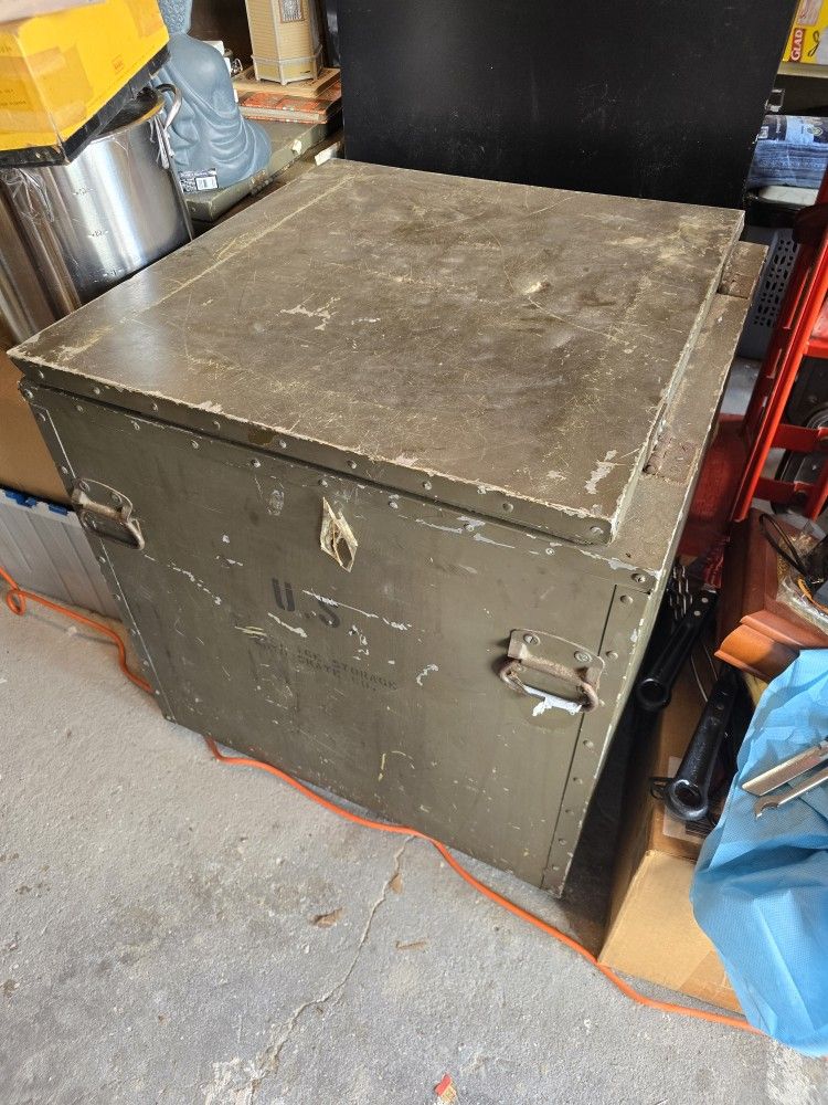 2 Army military metal crate w 4 handles available $50/each $80 pair 28" width 28" depth 29" height