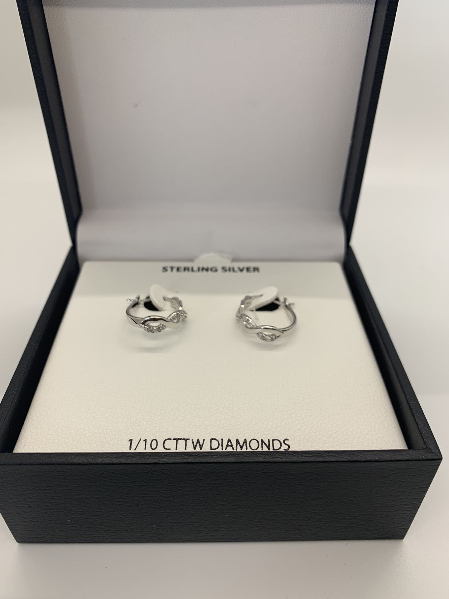 Brand new. Sterling silver 925. Earring hoops featuring 1/10 cttw. Diamonds. Thank you for browsing! Check out the rest of my jewelry on my page!