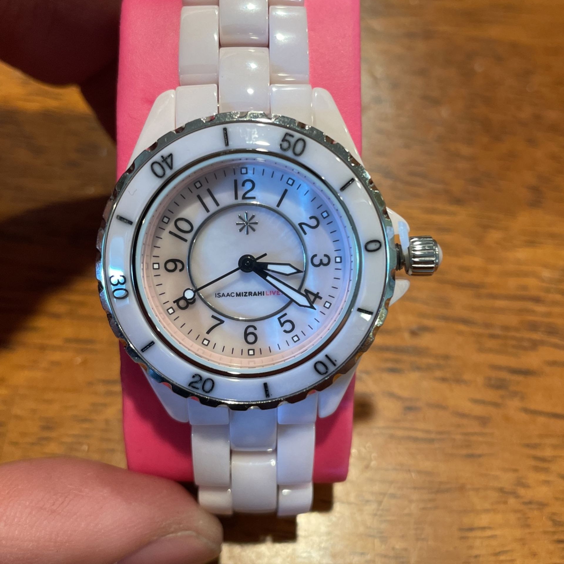 Never worn Isaac Mizrahi Ceramic Watch Women Pink Tone Round New Battery 6.25"