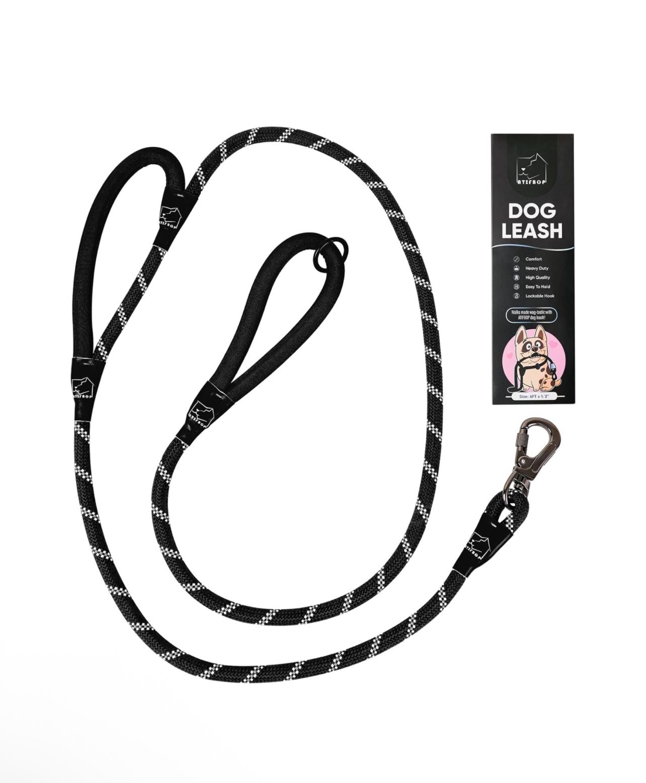 6FT Dog Leashes Double Handles, Lockable Metal Carabiner Clip,Durable Rope Dog Leash with Highly Reflective for Training, Medium Puppy Large Dogs(Black)