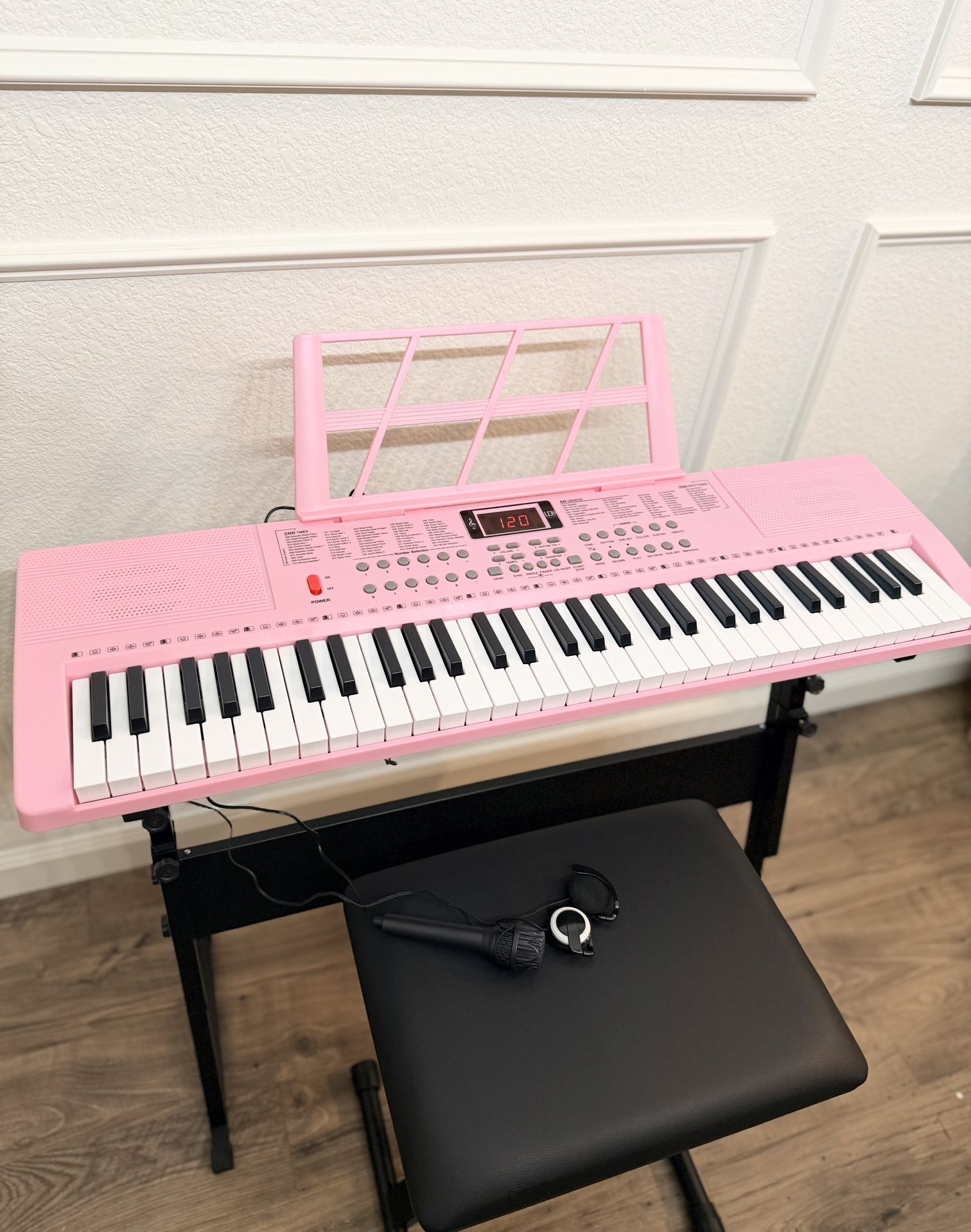 Brand New in Box Pink Piano keyboard. It comes with everything in the photos ( pink keyboard, stand, stool, microphone, earphones, booklet) Retails for $249 selling for $145 Firm Price