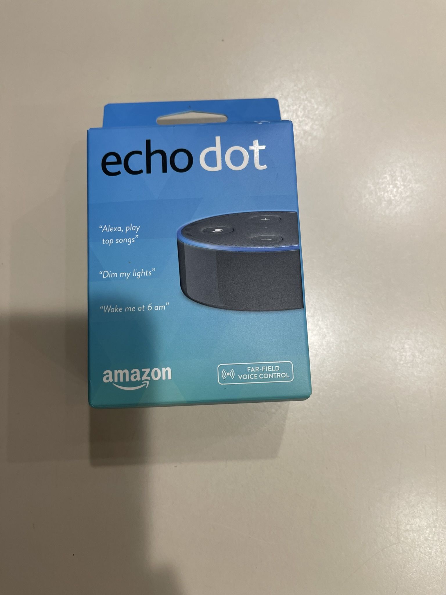 Echodot - Amazon, 2nd GENERATION, black, never used, Alexa voice service, Bluetooth, WiFi, power adapter, (9W), micro-usb, For $40.00. Pick up at home.