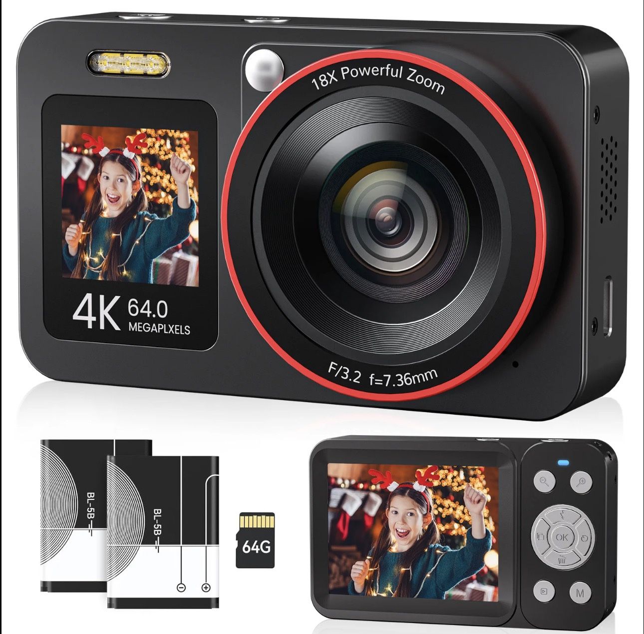 Deatti 1080P Digital Camera | 18X Zoom Compact Point & Shoot Camera with SD Card, Perfect Gift for Teens & Family