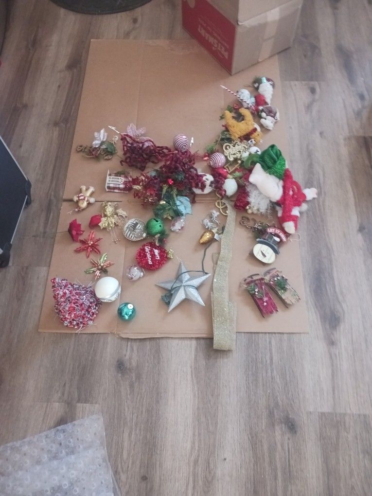 Various Christmas tree ornaments for tree or around your house take them off for 10 bucks