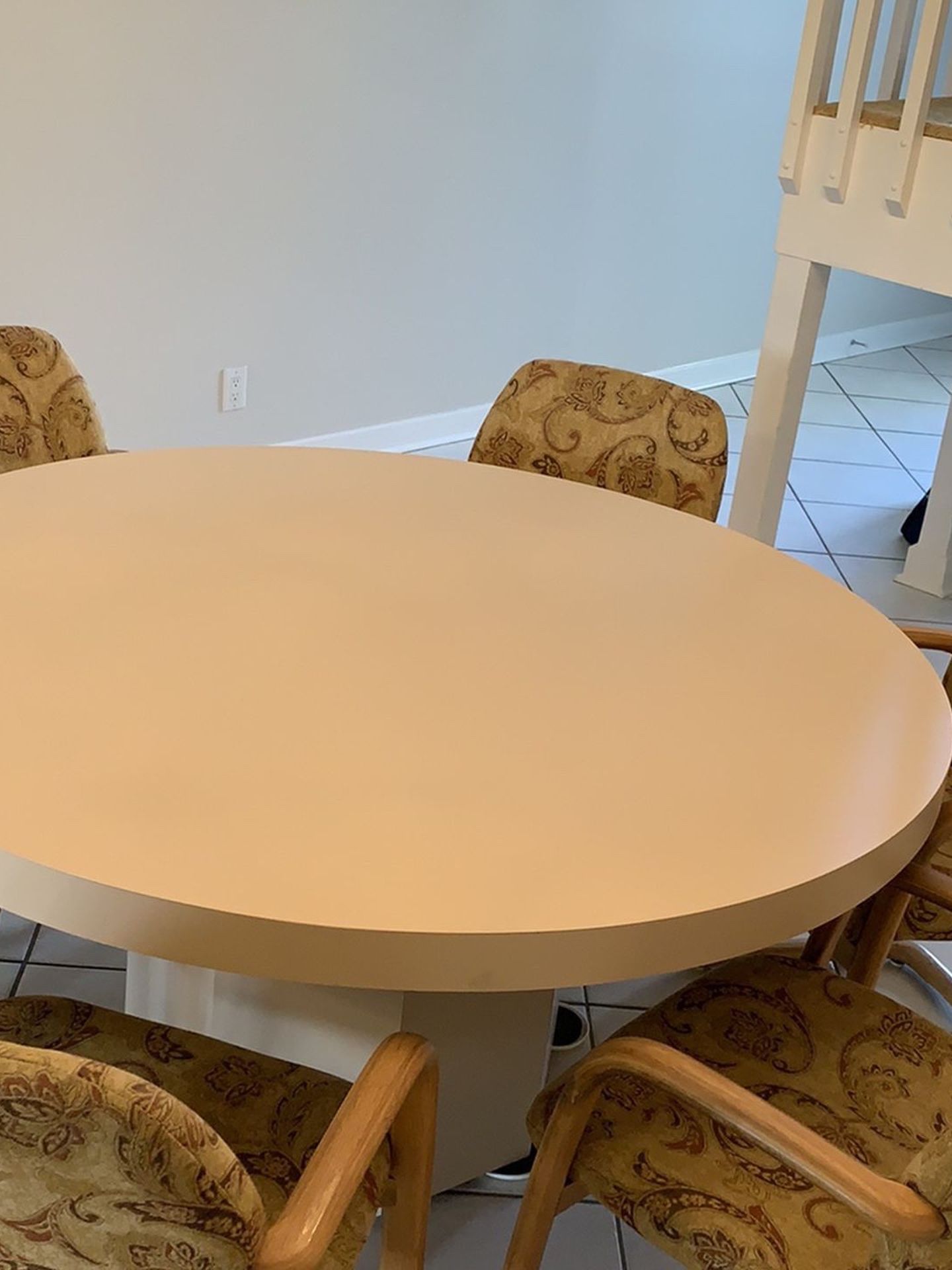 Great table for Dinning and game night 5’ foot round with 6 armed chairs with give for extreme comfort