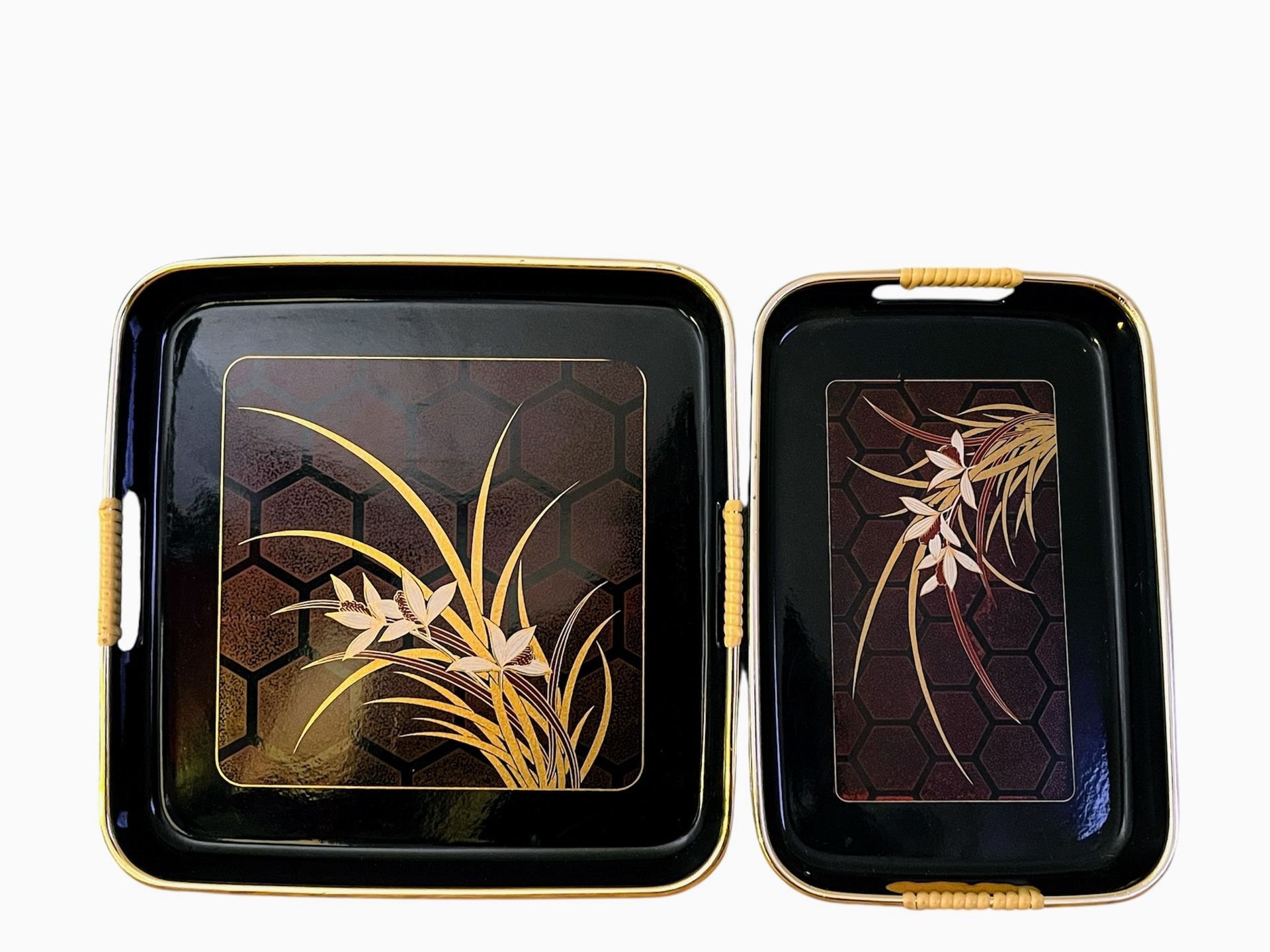 Vintage Made In Japan Toyo Lacquer Ware Nesting Tray Set of 2