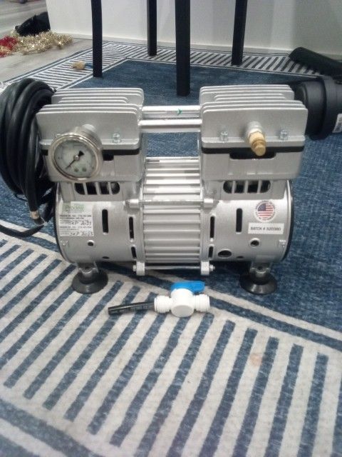 Brand new never used air compressor for prodew mist/foggers for produce, deli, fruits vegetables etc. Compressor is 110v 800w 7.2A oil free quiet operation model number 1COM004-C. It's the new and improved version over the old 1COM002 Is air compressor is universal and could be used for other applications as well. $80