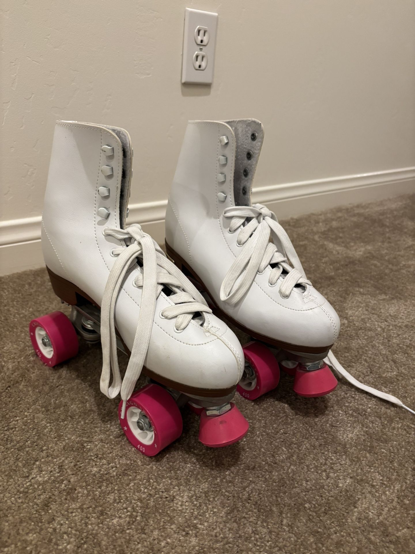 White & Pink Roller skates Ladies Size 10 (Fits like Size 9-9.5)