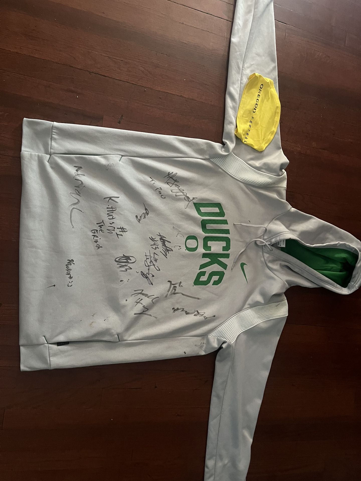 Hoodie came from the head coach of Oregon football great deal signed with players from nfl and got it signed 2022 holiday bowl at petco park Size is a Xl Will also take offers