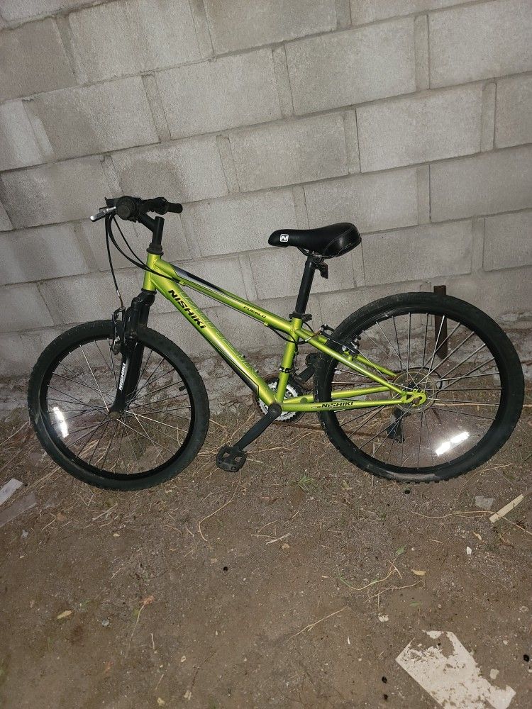 needs tube but in good condition..open to trades Nishiki Pueblo Youth Mountain Bike Frame Size 12” Frame Material Steel alloy Gears 21 Speed Wheel Size 24” Shifters grip Shifters , Functional Rear Derailleur Shimano Tourney, Functional Front DerailleurShimano Tourney TZ, Functional Brakes left brake is good , right brake needs new cable and housing. Crankset good Bottom Bracket good Fork/Shock NISHIKI Front suspension, Functional Wheels matching black wheels Tires/Tubes both good.