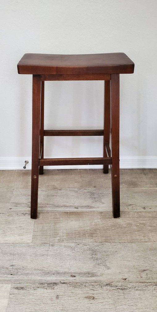Brown wooden bar stool. 27 inches tall. Pick up off Sleepy Hill Rd North Lakeland.