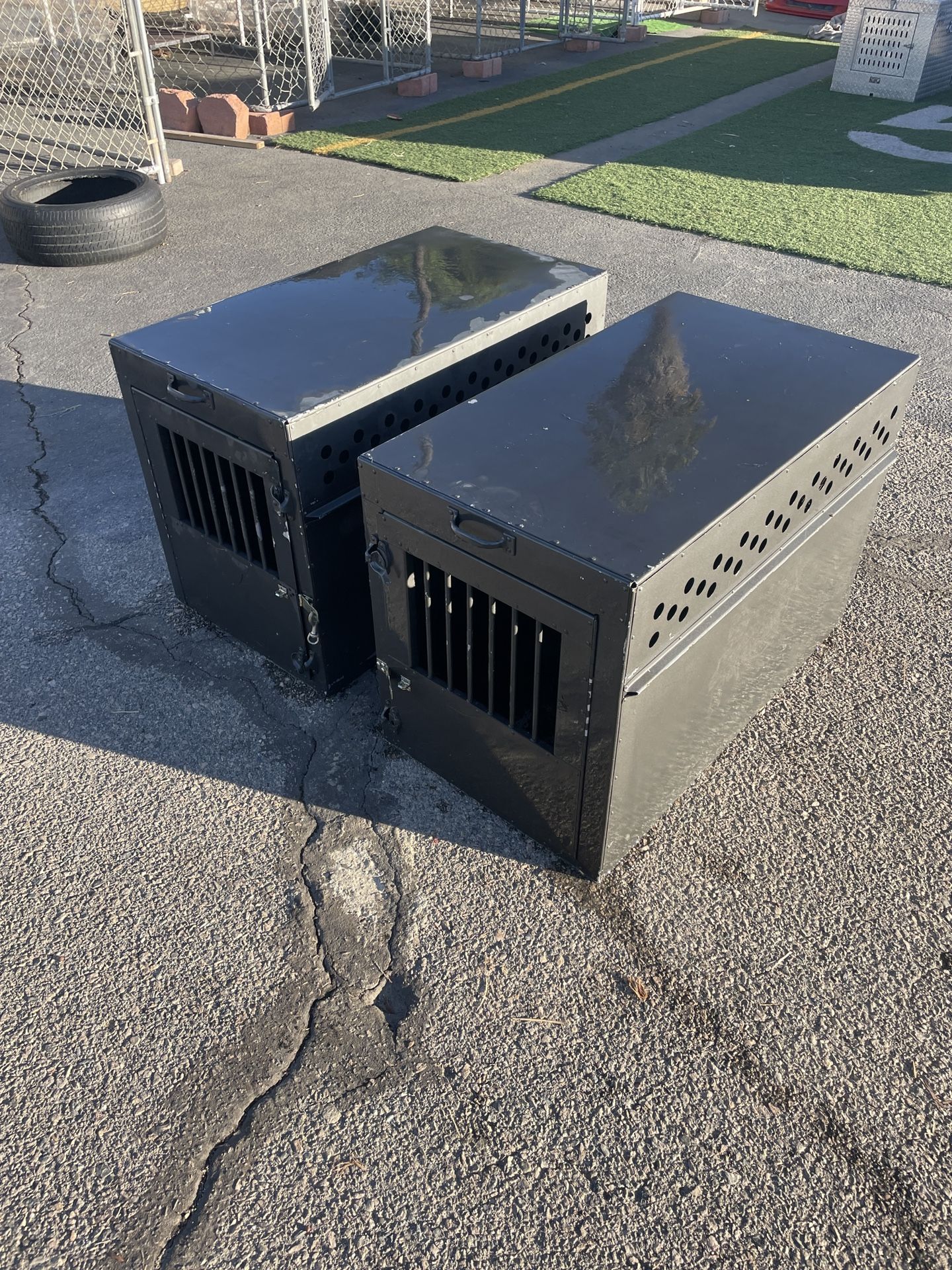 Made in USA πΊπΈ all aluminum dog crate was used for Airline travel. lightweight but strong crate. Dimensions are Length from front to back is L x 36β x width 20β x height 24β I have two matching crates at this price for each. Has handles and two latches and lock. Door dimensions are 16β width x 21β height
