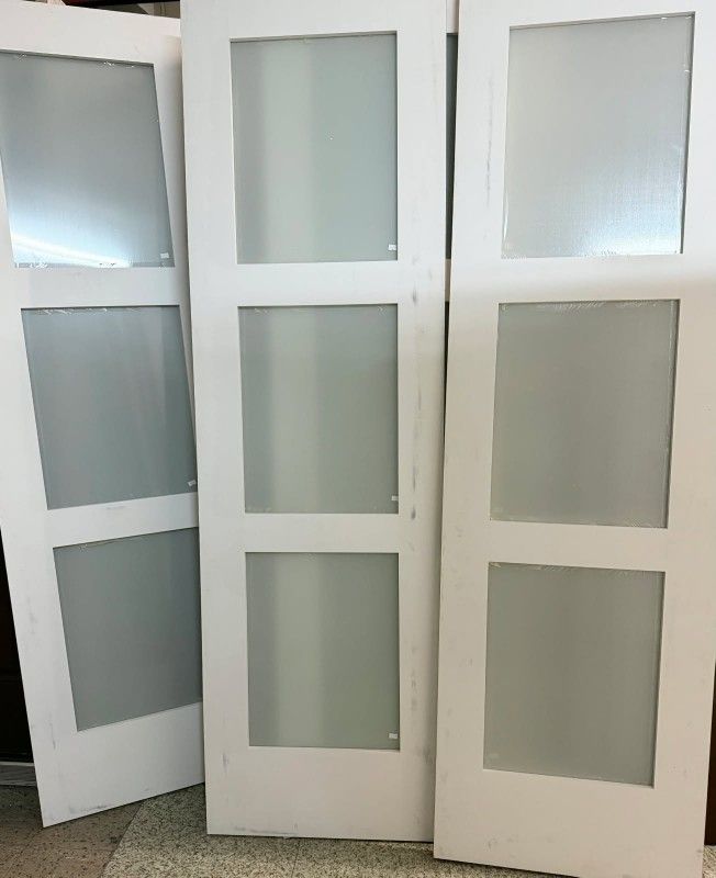 Size 24"x80 Modern frosted 3 panel 📣Feel free to visit our location 👇 📍B&R Molding & Doors 851 E Foothill Blvd Rialto 92376 Business Hours Monday-Friday 8:00-5:30pm Saturday 9:00-2:00pm