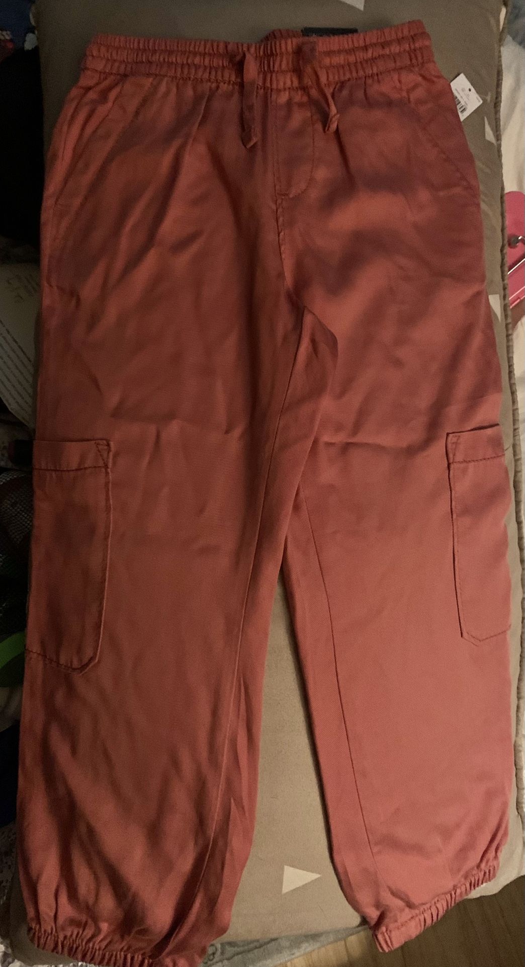 I have a brand new pair of Gap pants for kitty size 6/7 with tags attached. They are a coral color but great for a girl or boy. Selling for $5 only