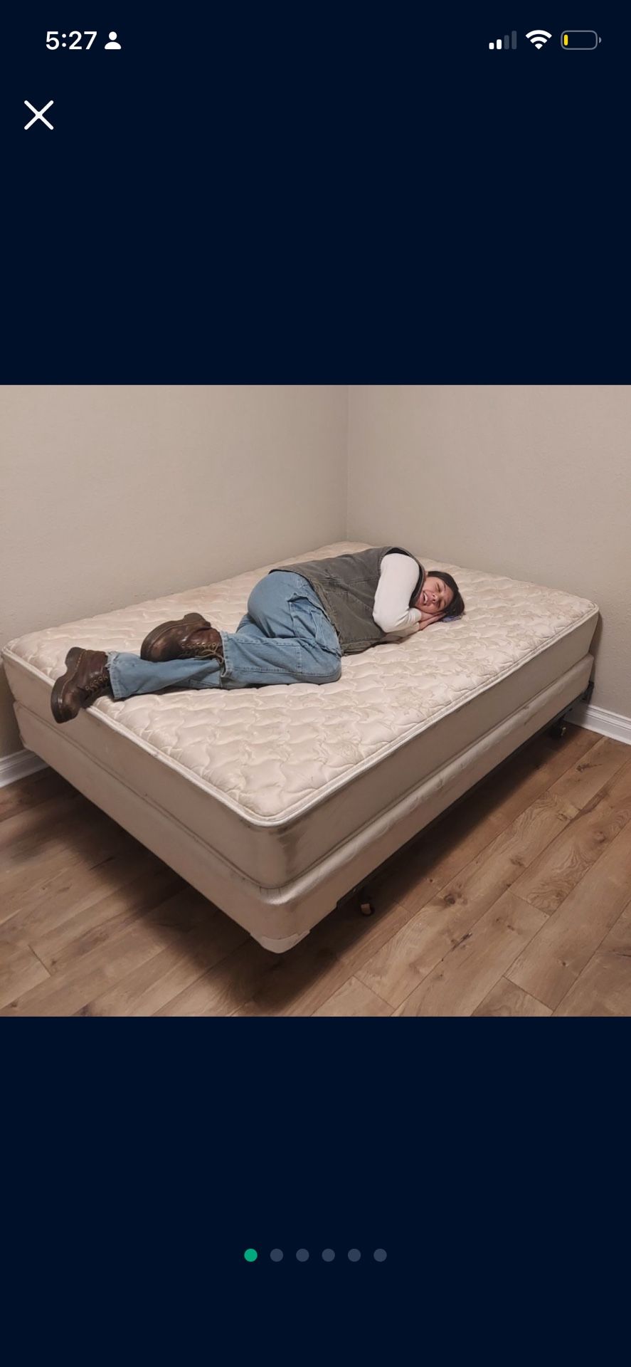 queen mattress, my bf and I are moving in together so one has to go and he has a temperpedic lol. Minor scuffs on the corners from moving and a lil stain from coffee I scrubbed out pretty well. In good condition just needs a new home!