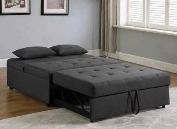 Borgata Collection Sleeper Sofa Bed with Linen-Like Fabric Upholstery-2 Pillows Included and Wood Frame Construction in Grey This ultra modern 2-person sleeper sofa, composed of linen and pinewood, both fits in and makes its own stylish statement in any room where guests, visitors or family spend the night. The understated contours and dramatic grey color enhance any overall design scheme. A gently reclining headboard and tufted pattern create subtle accents, and two matching pillows assure equal good looks as a bed. It's easy to convert for sleeping. Spring and webbing construction offer a great night's sleep. Dimensions: Sofa Width: 47.5 in Depth: 43.5 in Height: 34.25 in Seat Height: 17.5 in Seat Depth: 18 in Sofa Bed Width: 47.5 in Depth: 75.5 in Height: 17.5 in Sofa + Sleeper Width: 47.5 in Depth: 49.5 in Height: 34.25 in Model# CO360090 Price 789.00. In stock! We offer free delivery delivery. Shop now at NUOVAETADESIGNSCOM