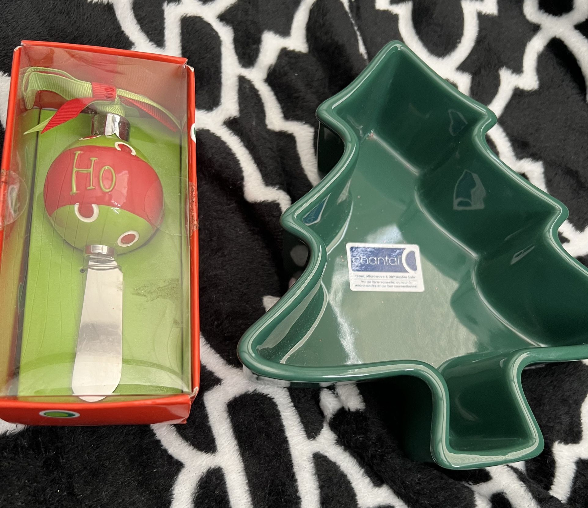 Mud Pie butter knife and Christmas tree baking pan