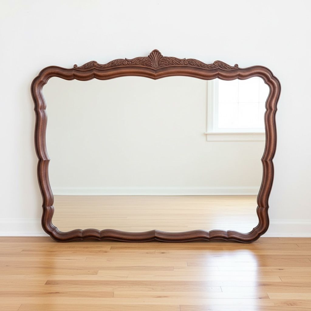 Gorgeous vintage plastic mirror. Has gorgeous details on top. Solid and heavy! Excellent vintage condition. Can be hung on the wall. Price is firm. Cash only. *All of my pieces are vintage, antique or just used. Therefore, they are not perfect. Some pieces may have nicks, dings or scratches. Nothing major, everything is useable.* Measurements: 36” tall 42” wide