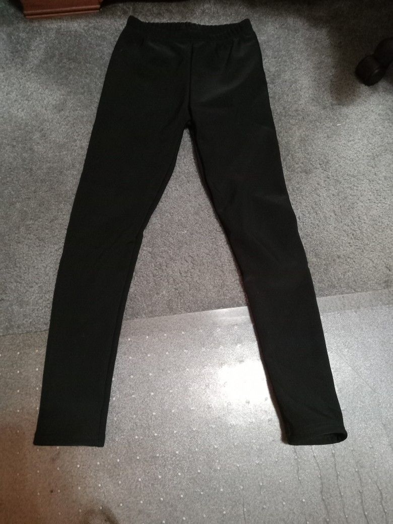 The first picture is solid black size small to medium The second pair is a denim look stretch skinny jean faded with pockets Both are brand new with Packaging they are selling for $8 or $14 for both pairs