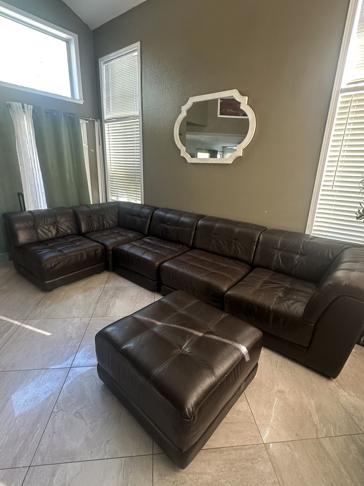 Please only message if you are able to come pick it up asap today before 3p. Bring a truck or trailer Free for someone who might be able to use them Still good can arrange any style they do not connect together as that’s how they are but they seem to stay in place for the most part. Use do any space. Can use some light cleaning easy to clean cushions don’t remove all individual one piece piece arrange to fit your space. Ready for pickup today before 3. Light weight also not heavy smoke free and pet free. Couch sectional seating chairs leather look kids