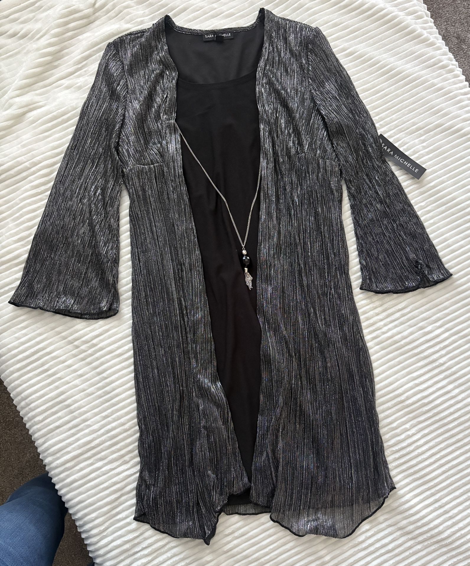 Sara Michelle silver and black 2-in-1 jacket dress with a detachable necklace. In new condition size small. Need gone asap cash or Venmo