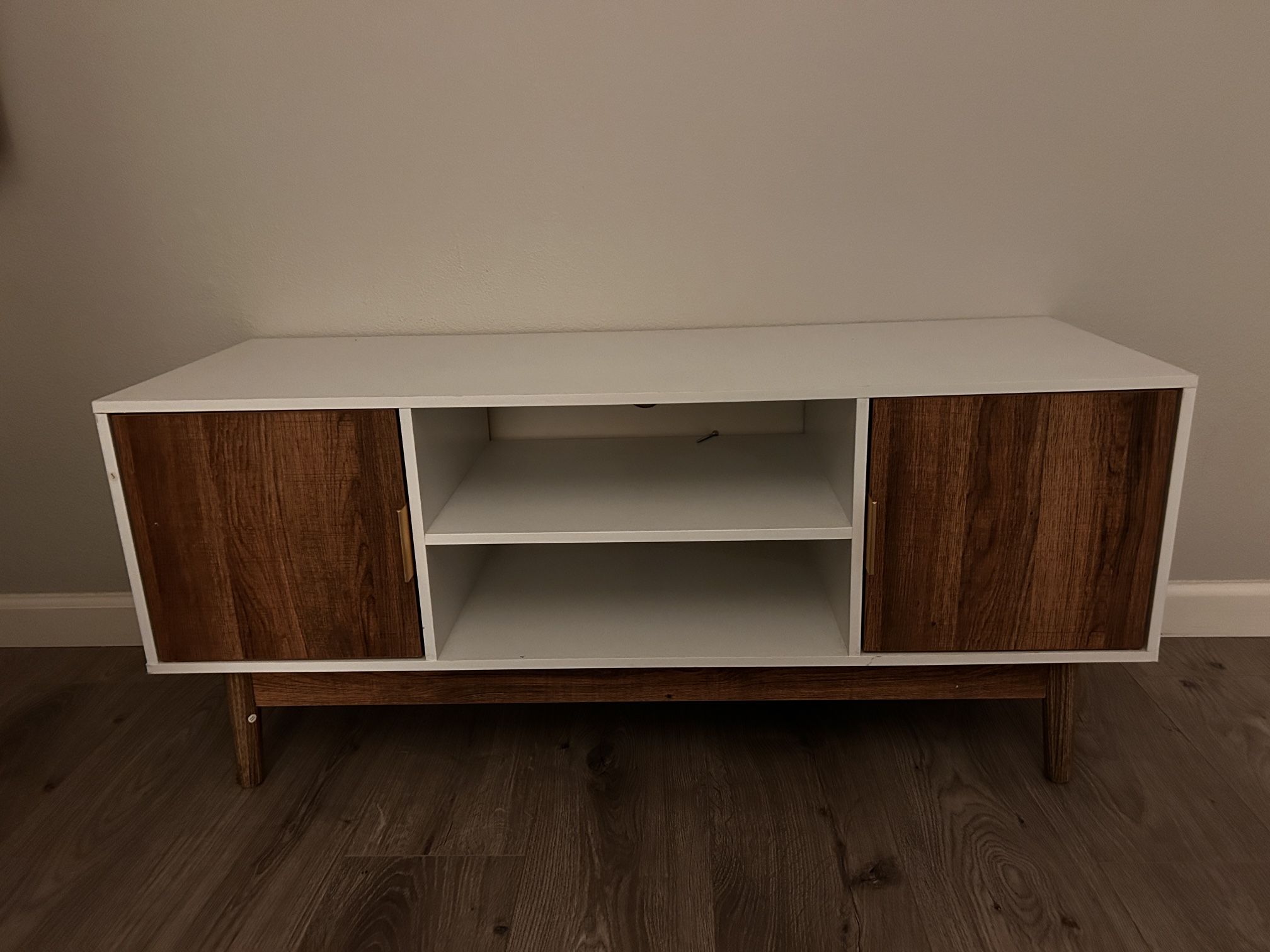 TV stand modern 43,3/15,4/18,9 L/D/H Entertainment center with storage for bedroom, living room. Doors walnut color.