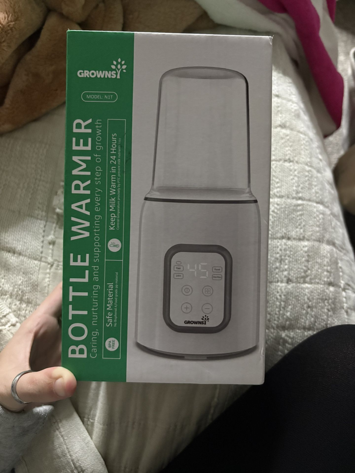 Grownsy Bottle Warmer (Household use only)!!! I was gifted this at my baby shower but i’m selling it because my baby doesn’t take bottles. It’s never been opened and in the second slide, i just ripped the shipping label off