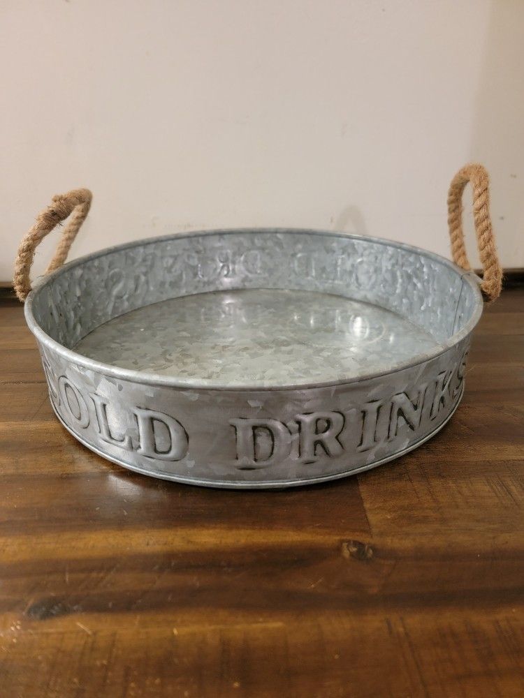 Serving Tray-Cold Drinks-Metal w/Rope Handles (14 Round)