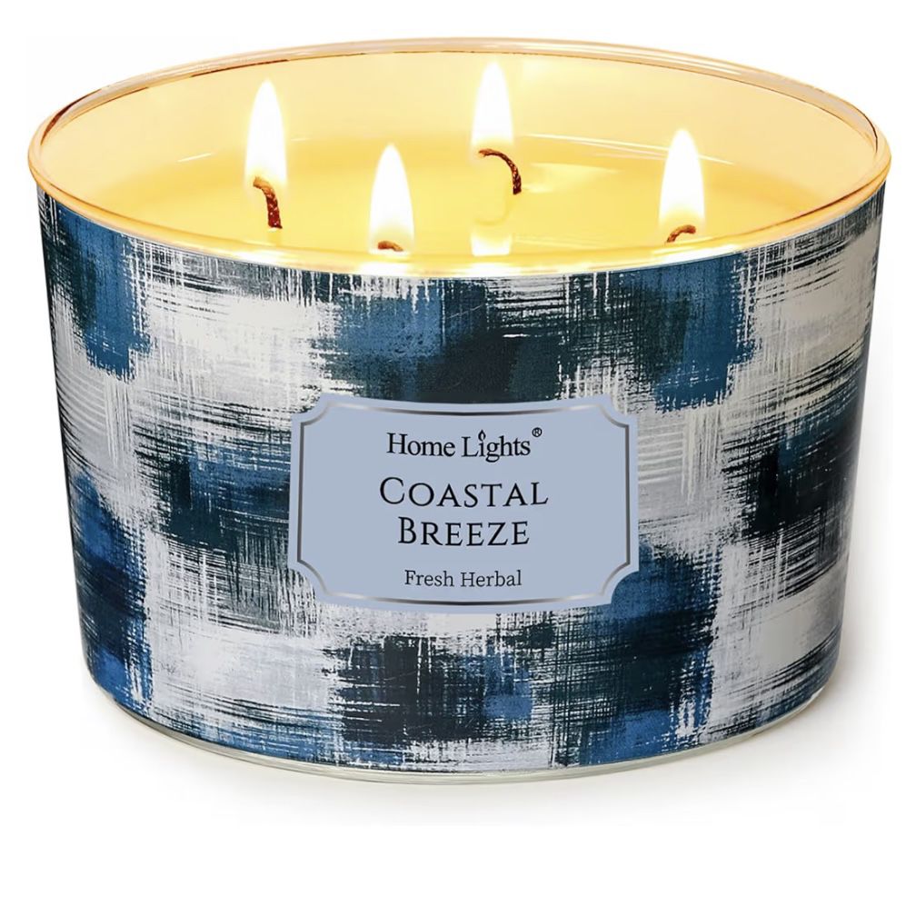 New HomeLights Large jar Candle | 4-Wick Long-Lasting Scented Candles, 18oz Natural Soy Wax Candle for Home Scented, Scandinavian Minimalist Design Gifts for Women & Men, Coastal Breeze