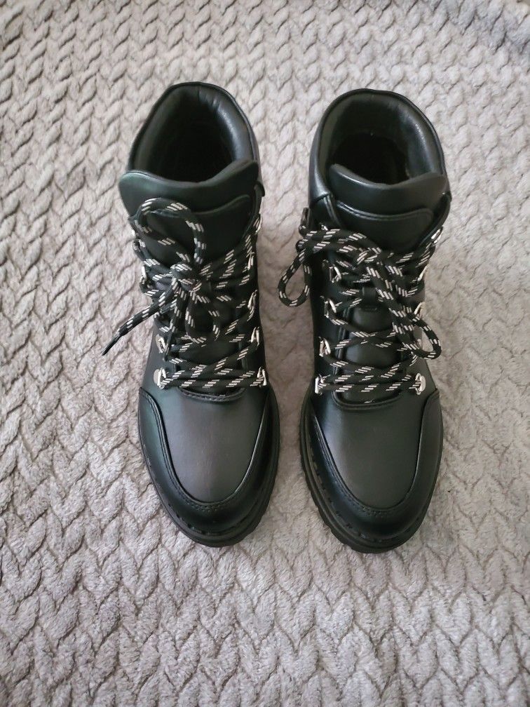 Brand new with box. Never worn. Black leather lace-up ankle boots.