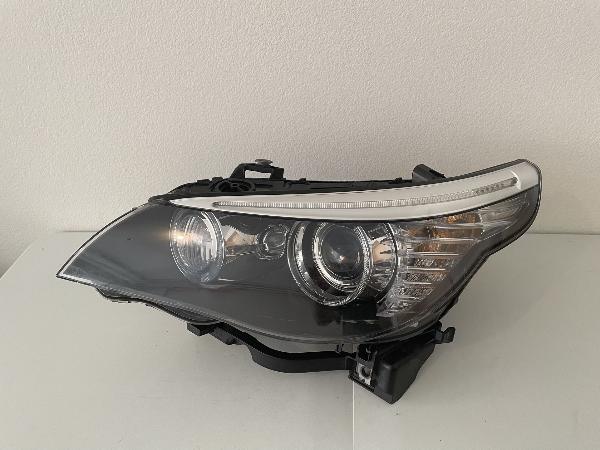 Brand New! BMW E60 5-series (2008-2010) LCI Bi-Xenon Adaptive Headlight - Driver Side. Condition: Brand New Brand: Hella - OEM Fitment: All 2008-2010 E60 5-series Part Number: A97.0(contact info removed) This headlight is free of any cracks, chips, or broken tabs. It does have a very slight scuff, which can be buffed out. Ready to install! Bulbs may be included with purchase, but are not guaranteed to work. Asking: $625.00 (obo) Local Pickup: 92602 Shipping Available: Buyer covers the cost of shipping.