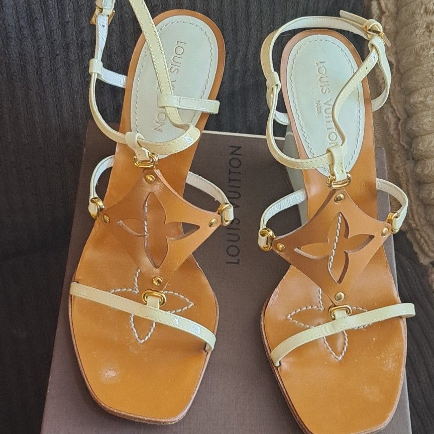 GENTLY USED ONCE " AUTHENTIC LOUIS VUITTON SIZE 7 WOMAN'S WEDGES WITH BOX 100$