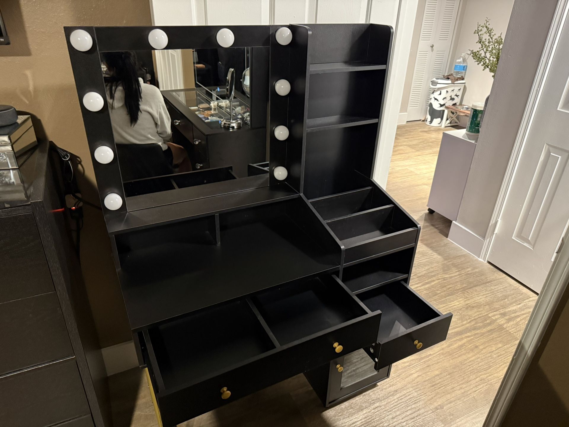 Vanity Desk with Mirror and Lights in 3 Colors, Makeup Vanity with Lights and Drawers,Black Vanity Table with Charging Station, Makeup Desk asking $150 obo
