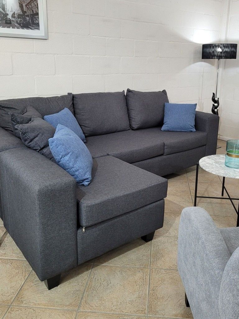 This modular sectional sofa is a great way to bring multiple seating options to your living room. It includes a left arm chair, right arm chair, two armless chairs, and two ottomans. Each piece is crafted from solid and engineered wood with barely-there legs for an approachable low-profile look. This sectional's upholstery comes in a hue and fabric of your choice to suit your space's overall aesthetic. Foam-padded interiors provide just the right amount of cushioning as you spread out and lounge after a long day. What's Included? V One-Armed Chair Component V 2 Toss Pillow V 2 Ottoman
